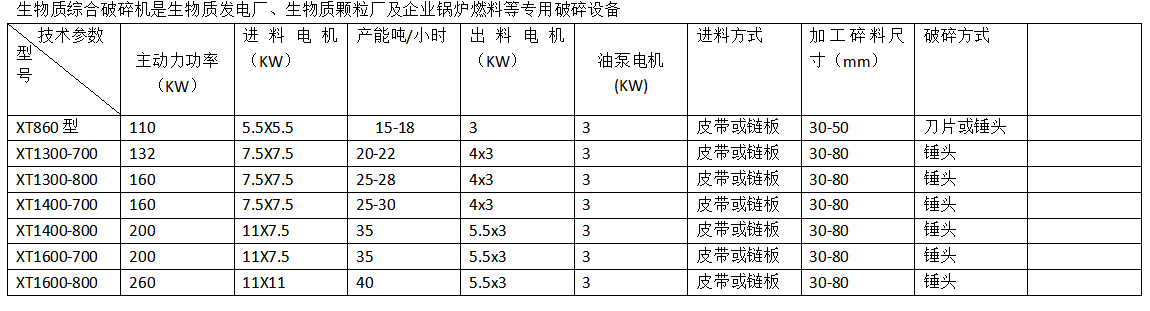 主要用途:生物質發(fā)電廠專用設備,用于建筑廢舊模板,樹枝木材,各種農作物秸稈的破碎。